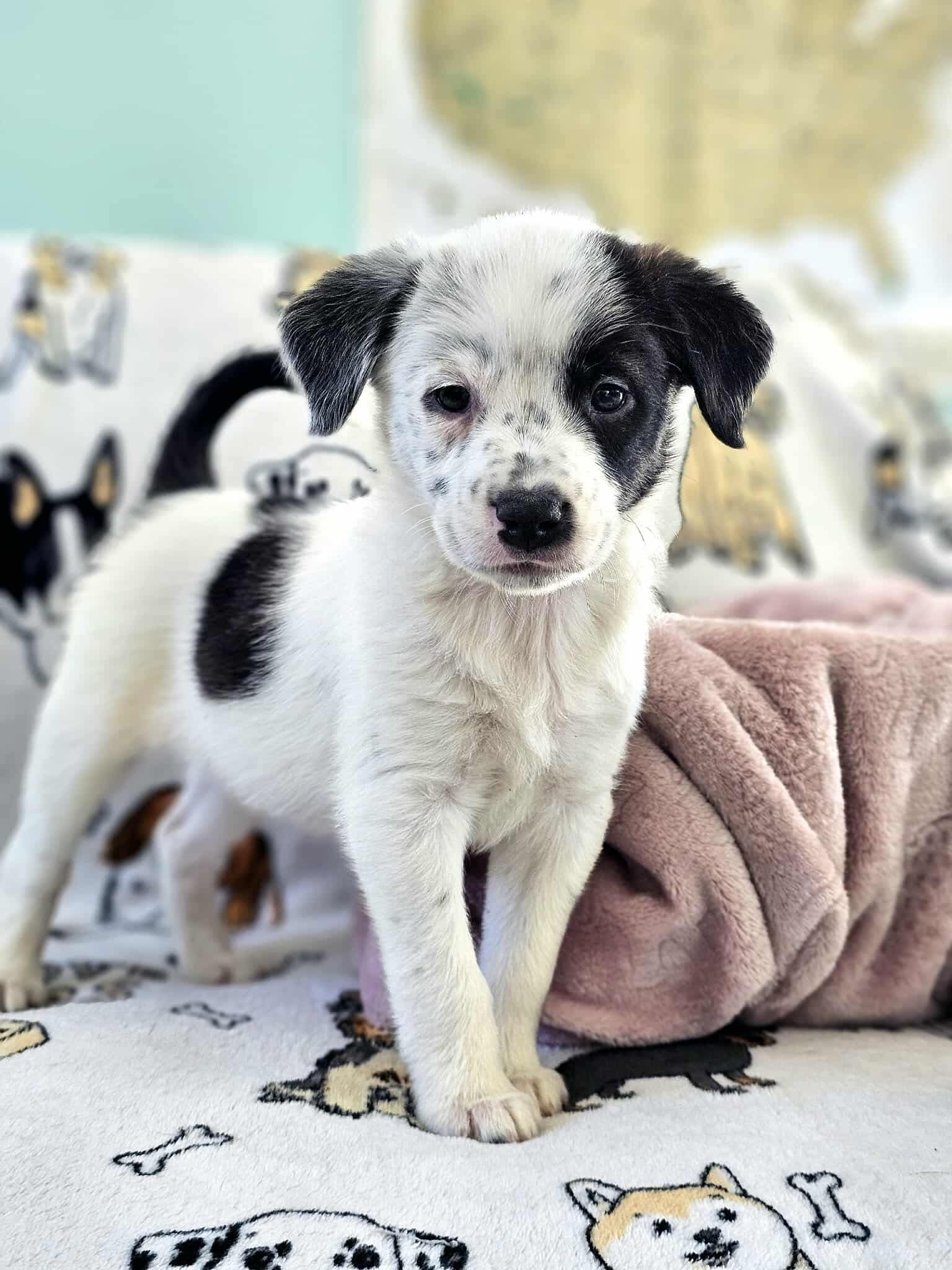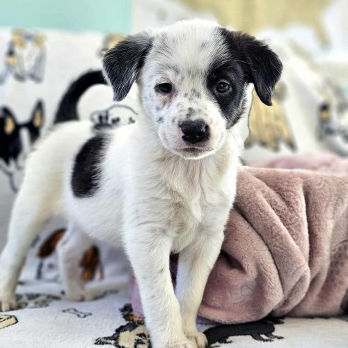 Polly joined us, along with her 8 siblings, the result of an unplanned litter. She is learning all about the spoiled dog life in her foster home - and trying to work on her potty training too!  She is primarily a mix of Lab and Border Collie and is estimated to be 50 lbs when fully grown.