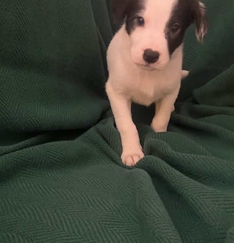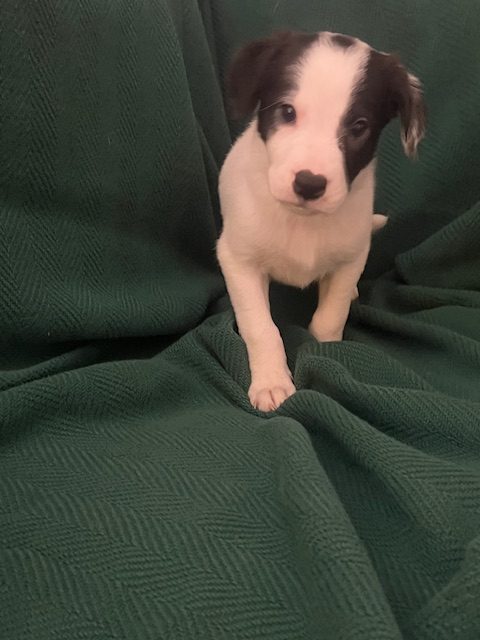 Emi joined us, along with her 8 siblings, the result of an unplanned litter. She and her littermates are sweet pups who are having fun exploring in their foster homes, learning all about life. She is primarily a mix of Lab and Border Collie and is estimated to be 45-50 lbs when fully grown.
