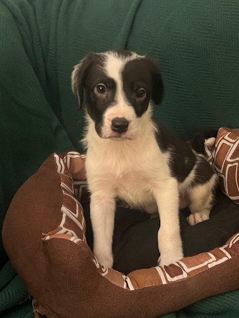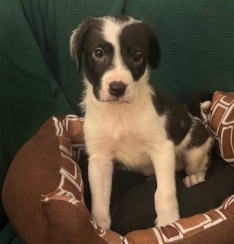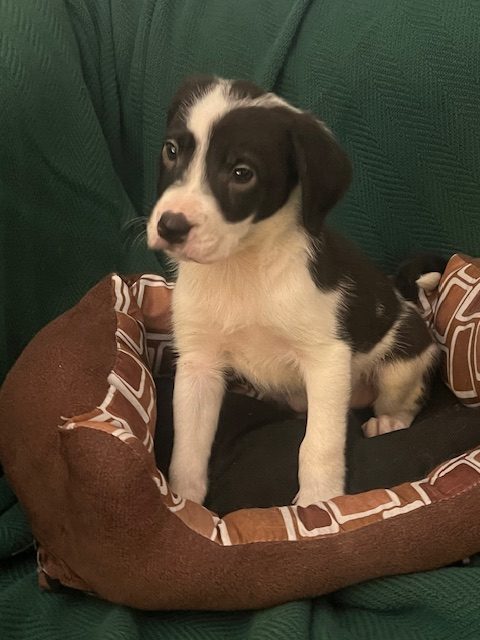 Sachi joined us, along with his 8 siblings, the result of an unplanned litter. He and his littermates are sweet pups who are having fun exploring in their foster homes, learning all about life. He is primarily a mix of Lab and Border Collie and is estimated to be 50 lbs when fully grown.