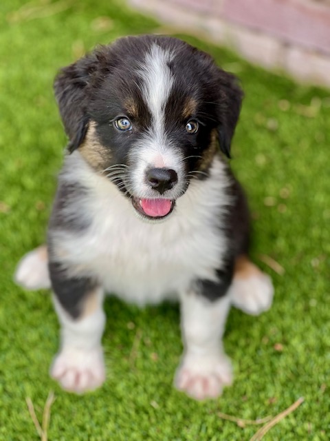 Jazzy is more than just a pretty face, this beauty is also smart, funny and a cuddlebug! She was born on April 10th and has been raised in a private home. Jazzy is a herding breed, she will need an active home who is committed to her training to keep her happy and out of trouble! She is expected to be around 50 lbs when fully grown.