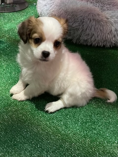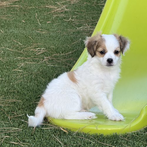 Toffee is a two-month old Chihuahua mix who is sweet and loving. She enjoys running around the backyard, wrestling with her siblings, and playing with the kids in her foster family. She's looking for a family to spoil her and give her the great life she deserves. She's estimated to be 15 pounds full grown.