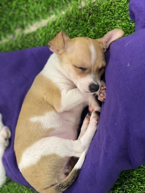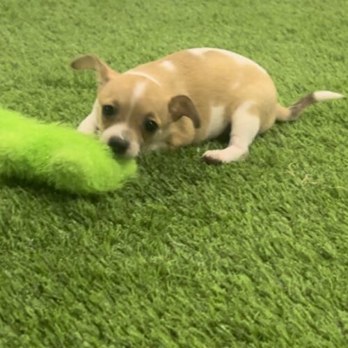 Tuna joined rescue on the day that she was born. Her Momma Sharkey did a great job raising her litter of 4 and little Tuna is a perfect mix of playful and cuddly. She loves toys already but is quick to settle in for some cuddle time too. We are estimating her adult size to be between 8-10 lbs. She will need a home with the time and patience to train an active puppy.