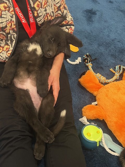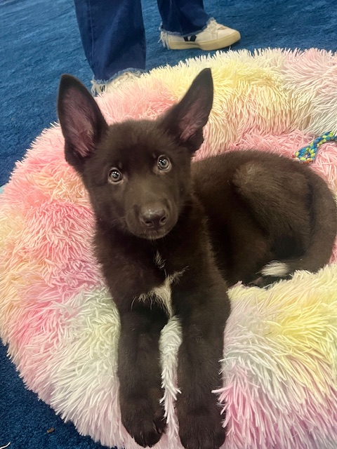 Vesper is the largest of his litter, weighing 9 1/2 lbs at 8 weeks old. He loves to cuddle, play hard and nap. Vesper joined us at just 2 weeks old after being turned into our local shelter without a mom. He has been bottle fed, hand-raised and loved on, making him a social boy who will always think he's a lap dog - even when he's 70 lbs!