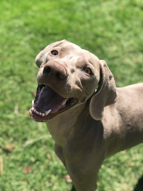 Wilma is a gorgeous Weimaraner who loves everyone she meets! This pretty girl gets along well with other dogs and loves kids. She is kennel trained but could use some work on her leash manners and other basic obedience skills. Her friendly exuberance is cute but can be overwhelming for someone not accustomed to such a happy greeting! Wilma is 20 months old and weighs 58 lbs.