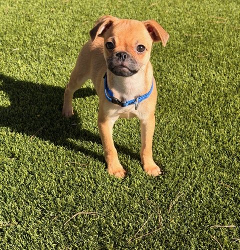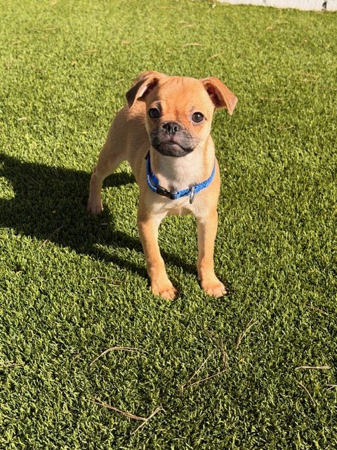 Zan came to us, along with his sister and Mom (already adopted) at 6 weeks old. His mom is a petite Pug while dad is a mystery. Zan has turned into the life of the party! He loves to make new friends and once he's tired out, he is happy to cuddle into any available lap for a snooze. Zan was born December 20th; he is expected to be around 10-12 lbs when fully grown.