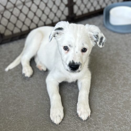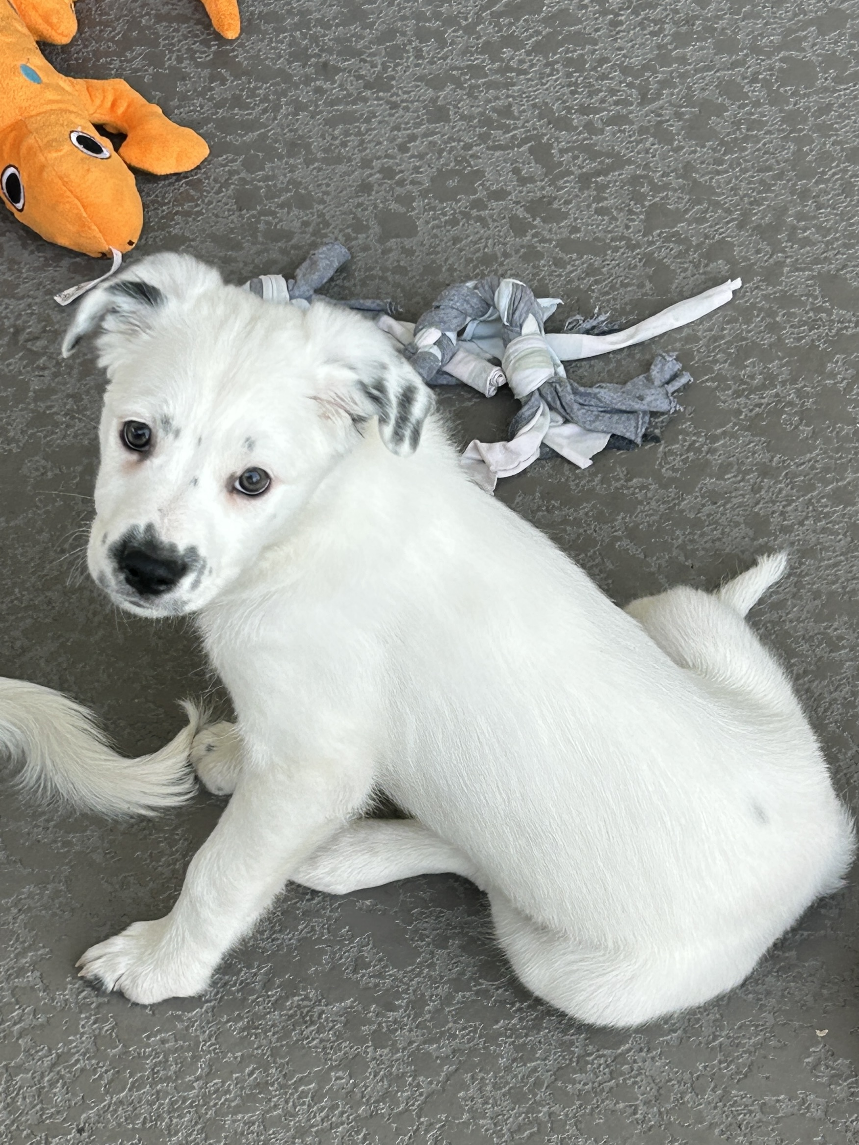 Zinnia is a female 10 week old Border Collie lab mix who loves toys. She is a little shy at first but is quick to open up with her sweet face and wagging tail. She is expected to be about 45-50 pounds full grown.